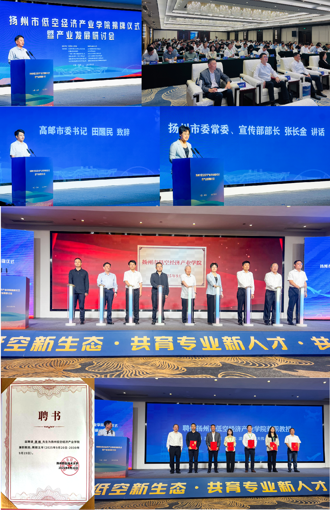 9月20日上午,由高邮市人民政府、扬州职业技术大学主办,瞰景科技发展(上海)有限公司共建的“扬州市低空经济产业学院揭牌仪式暨产业发展研讨会”在汇富金陵大饭店盛大启幕。瞰景科技大区总监唐峰先生受聘成为扬州低空经济学院兼职教授,共同推动产学研深度融合,助力低空经济人才培养!