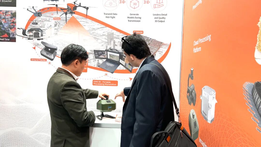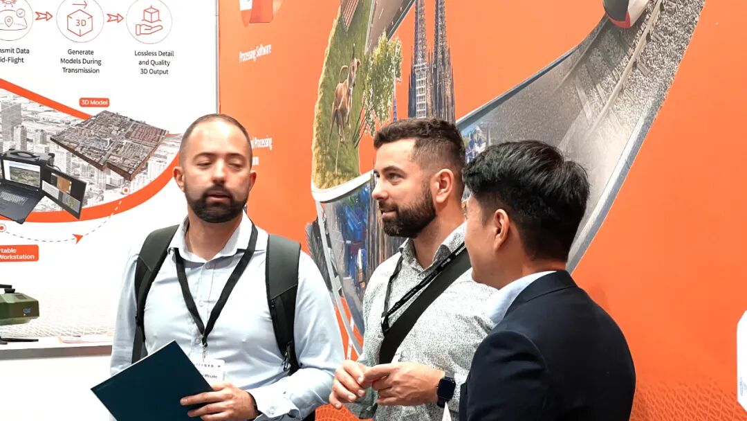 展会伊始,瞰景科技展位便吸引了大量专业观众驻足。来自不同国家的测绘专家、行业合作伙伴纷纷来到12.0F091展位,深入了解瞰景科技的技术解决方案,并探讨合作可能性。